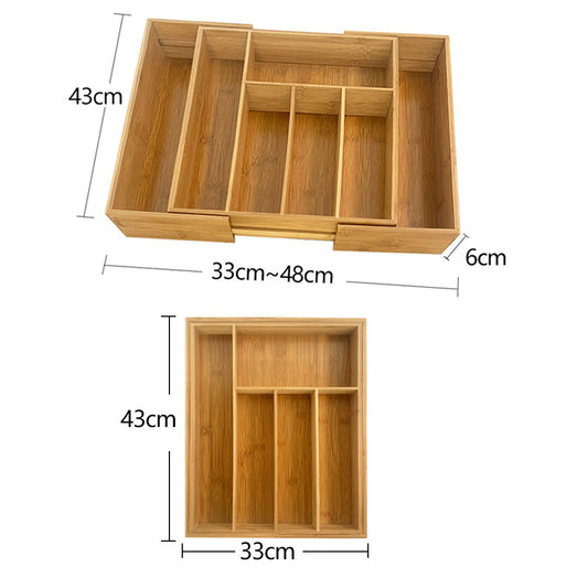 Bamboo cutlery tray, 5-7 compartments, expandable cutlery tray